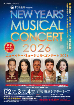The annual New Year Musical Concert will be held at Tokyu Theatre Orb. Top stars who have played leading roles in musicals such as ‘The Phantom of the Opera’, ‘Les Miserables’, and ‘Wicked’ are coming to Japan to perform a series of well-known songs.