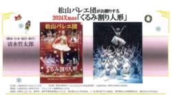 Matsuyama Ballet presents the ever popular “The Nutcracker”, directed and choregraphed by Tetsutaro Shimizu. Towards the end of the performance, Christmas songs will be included, “Jingle Bell Suite” (Matsuyama Ballet Company original)